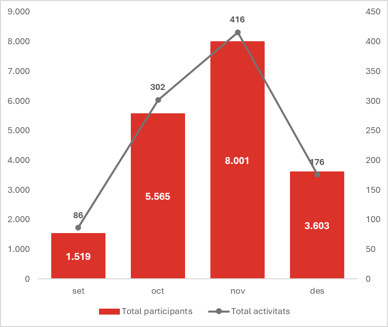El mes de novembre ha estat el període amb més activitat, amb 8.001 participants en 416 activitats.