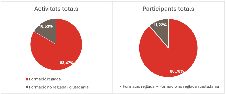Durant el primer trimestre del curs 2025-2026 s’han registrat 18.688 participants en un total de 980 activitats. En comparació amb el mateix període del curs anterior, s’observa un increment en el nombre de participants, fet que indica l’interès de l’oferta educativa ja des de l’inici de temporada.